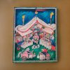 - The painting evokes a sense of historical storytelling, depicting a noble banquet or a significant meeting among high-ranking individuals. The use of vibrant colors and detailed border patterns suggests a reverence for the historical subject matter, while the figures’ poses and expressions convey a narrative of interaction and hierarchy.